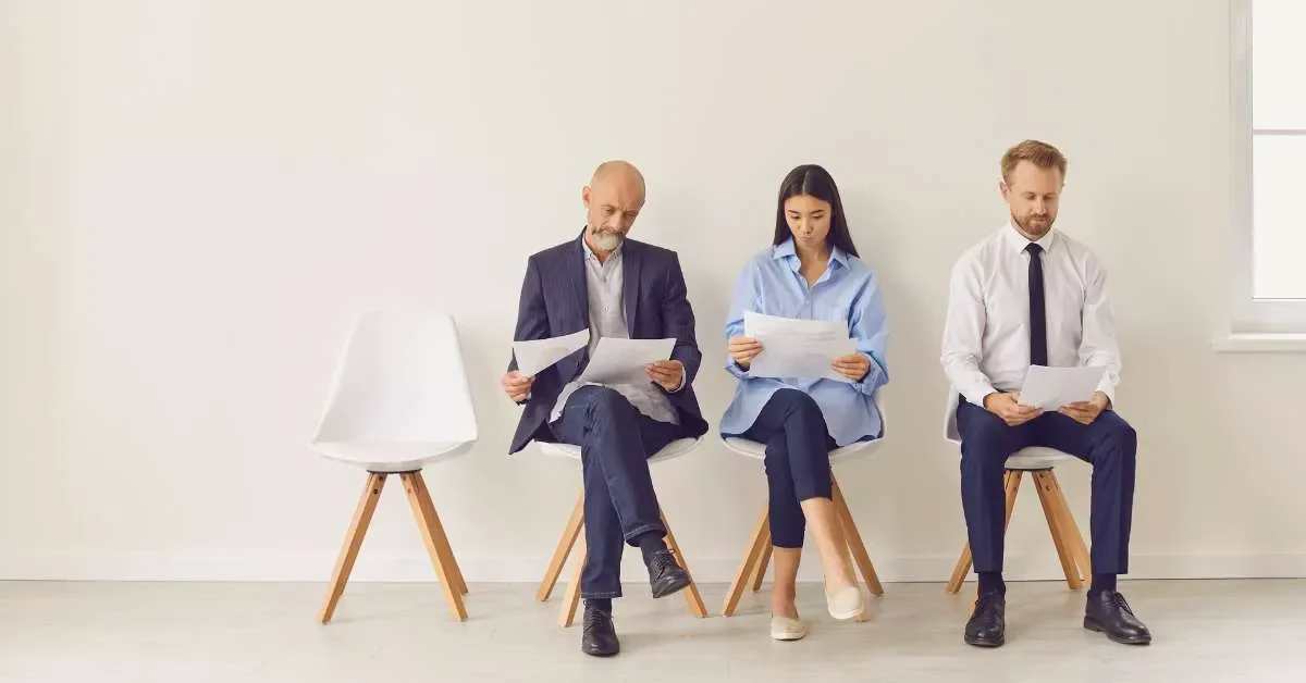 NEVEREST Bewerbungsgespräch 3 Personen warten auf Gespräch